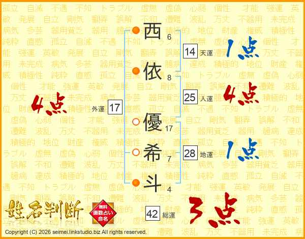 西依優希斗さんの外運は17画の4点!
