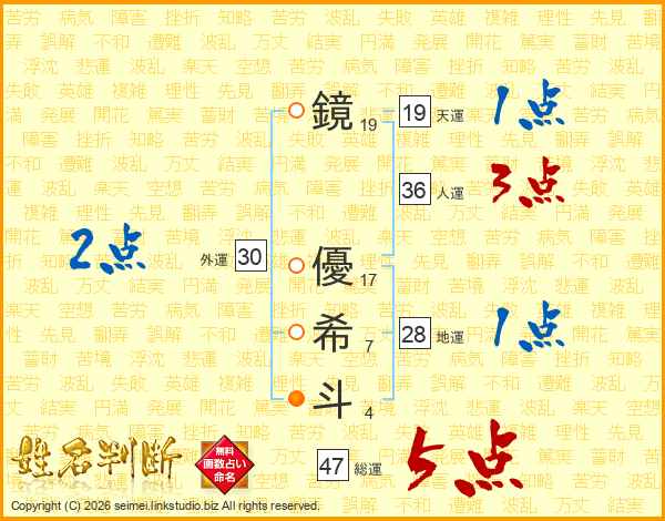 鏡優希斗さんの総運は47画の5点!