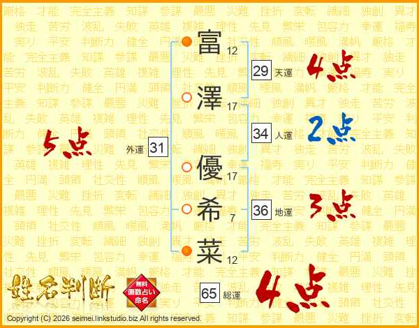 富澤優希菜さんの総運は65画の4点!