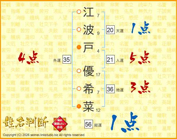 江波戸優希菜さんの外運は35画の4点!