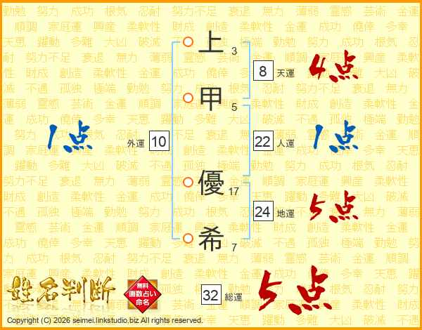 上甲優希さんの総運は32画の5点!