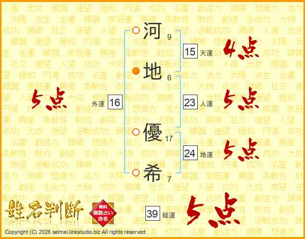 金運 順調 家庭運 興産 柔軟性 財成 創造