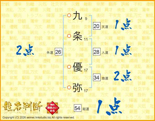 九条優弥さんの総運は54画の1点!