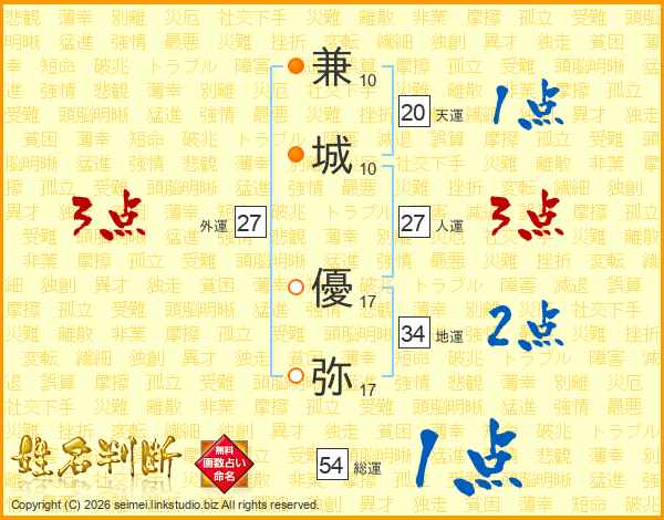 兼城優弥さんの人運は27画の3点!