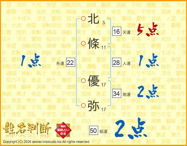 北條優弥さんの天運は16画の5点!
