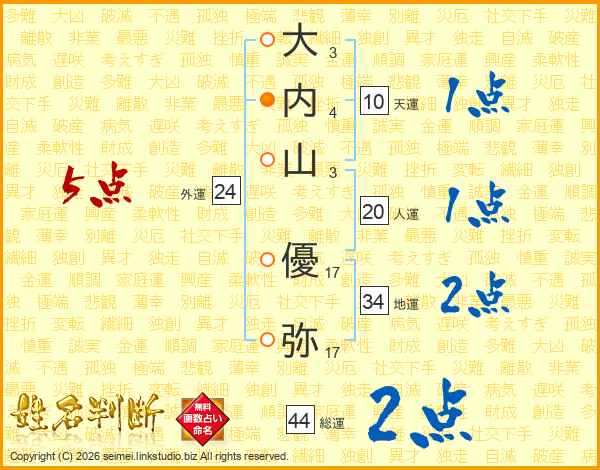 大内山優弥さんの総運は44画の2点!