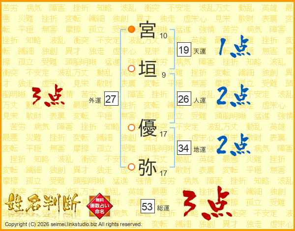 宮垣優弥さんの総運は53画の3点!