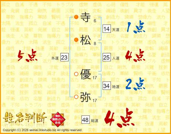寺(6画)松(8画) 優(17画)弥(17画)