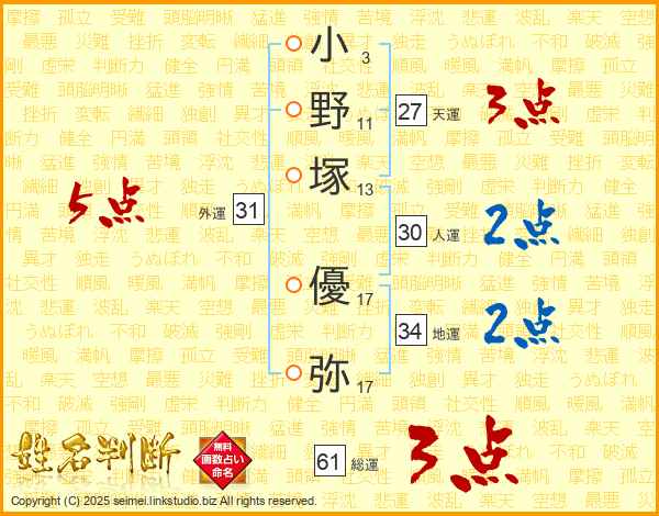 小野塚優弥さんの外運は31画の5点!