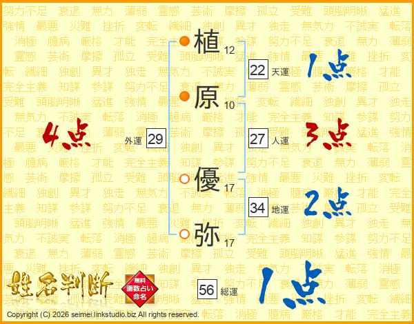 植原優弥さんの地運は34画の2点!