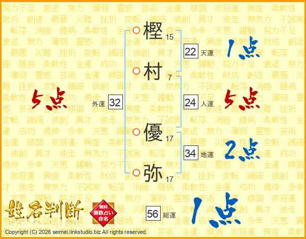 樫村優弥さんの総運は56画の1点!