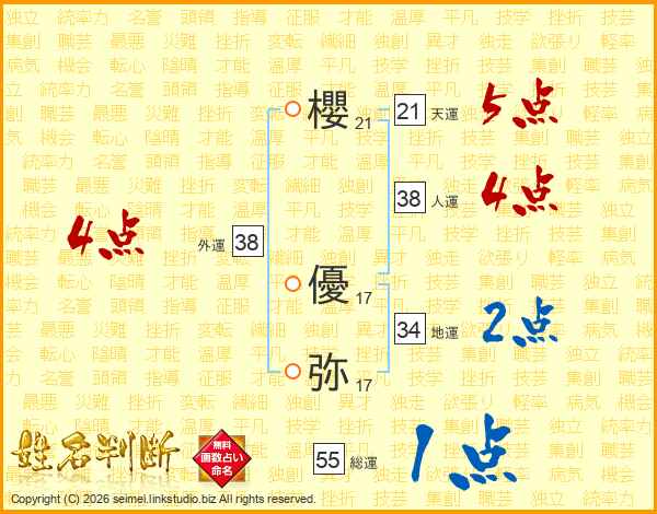 櫻(21画) 優(17画)弥(17画)