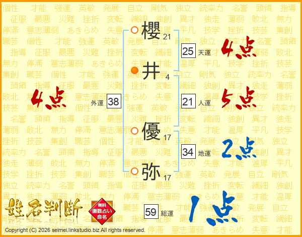 櫻(21画)井(4画) 優(17画)弥(17画)