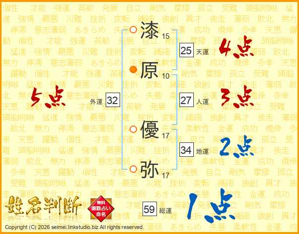 漆原優弥さんの天運は25画の4点!