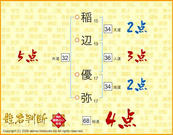 稲辺優弥さんの総運は68画の4点!