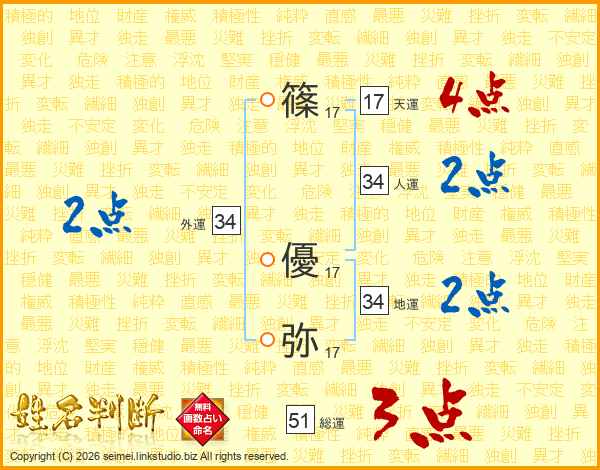 篠優弥さんの天運は17画の4点!