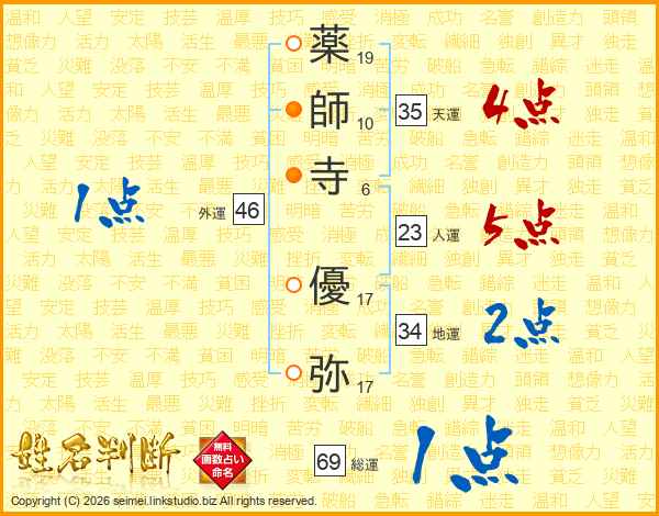 薬師寺優弥さんの総運は69画の1点!