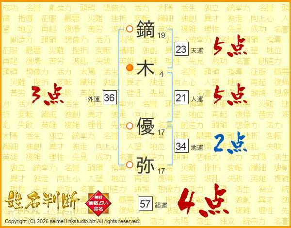 鏑木優弥さんの総運は57画の4点!