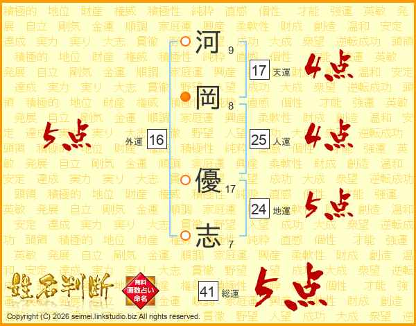 河岡優志さんの人運は25画の4点!