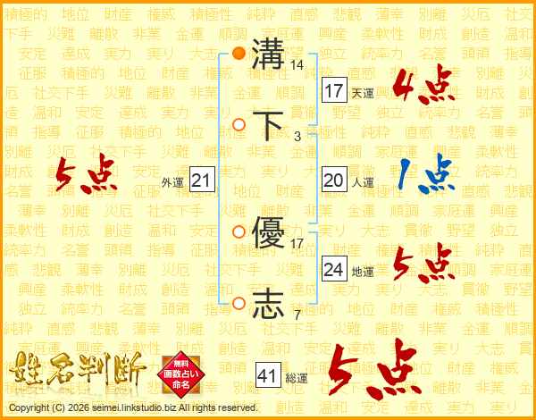 溝下優志さんの総運は41画の5点!