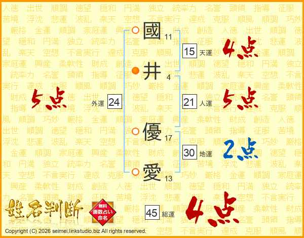 國(11画)井(4画) 優(17画)愛(13画)