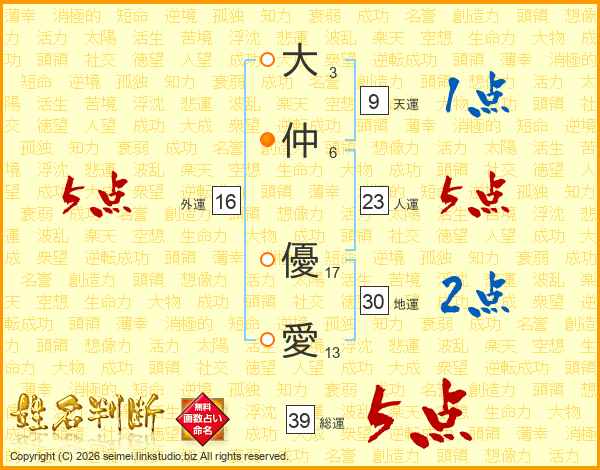 大仲優愛さんの総運は39画の5点!