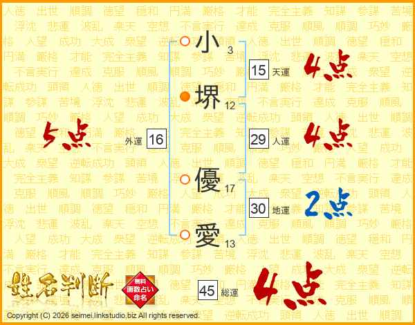 小堺優愛さんの総運は45画の4点!