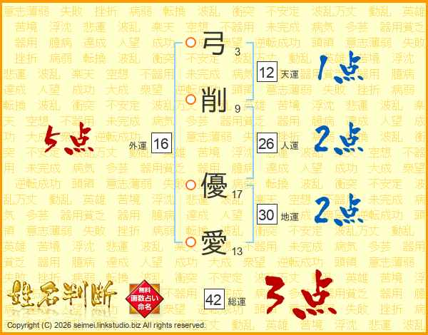 弓削優愛さんの総運は42画の3点!