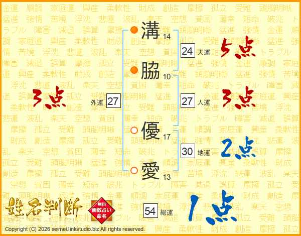 溝脇優愛さんの総運は54画の1点!