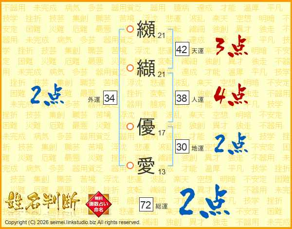 纐纈優愛さんの総運は72画の2点!