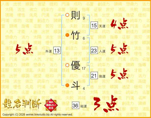 則竹優斗さんの外運は13画の5点!