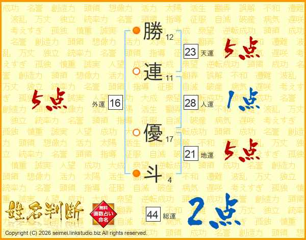 勝連優斗さんの総運は44画の2点!