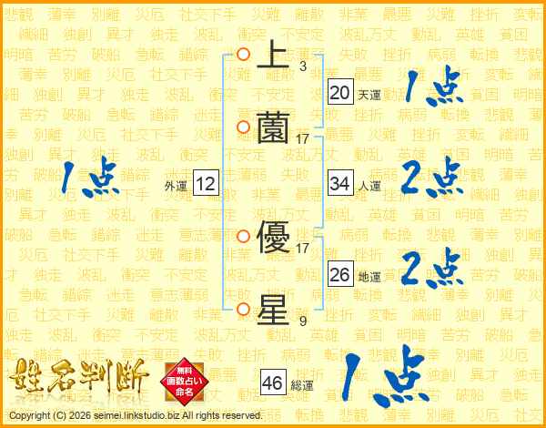 上薗優星さんの総運は46画の1点!