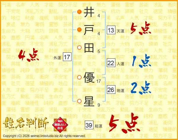 井(4画)戸(4画)田(5画) 優(17画)星(9画)