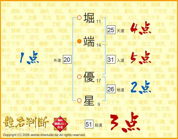 堀端優星さんの地運は26画の2点!