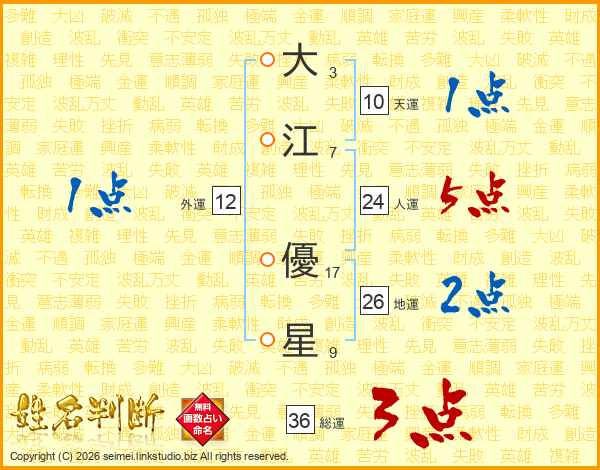 大江優星さんの地運は26画の2点!