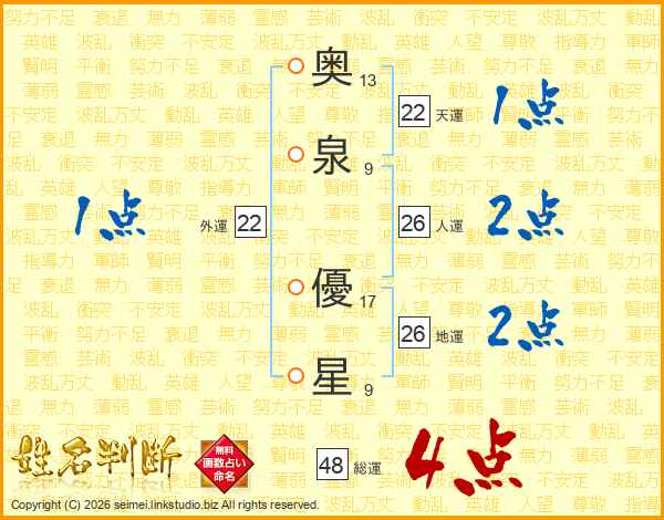 奥泉優星さんの総運は48画の4点!