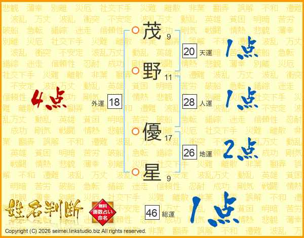 茂野優星さんの地運は26画の2点!