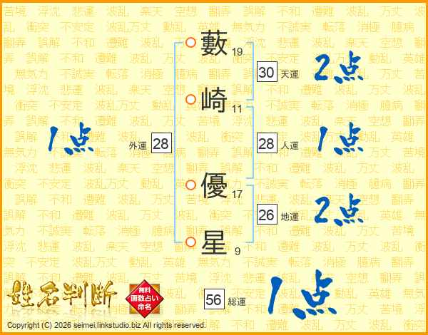 藪崎優星さんの地運は26画の2点!