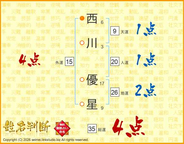 西川優星さんの地運は26画の2点!