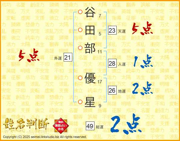 谷田部優星さんの外運は21画の5点!