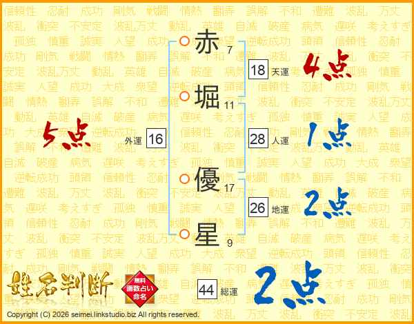 赤堀優星さんの地運は26画の2点!
