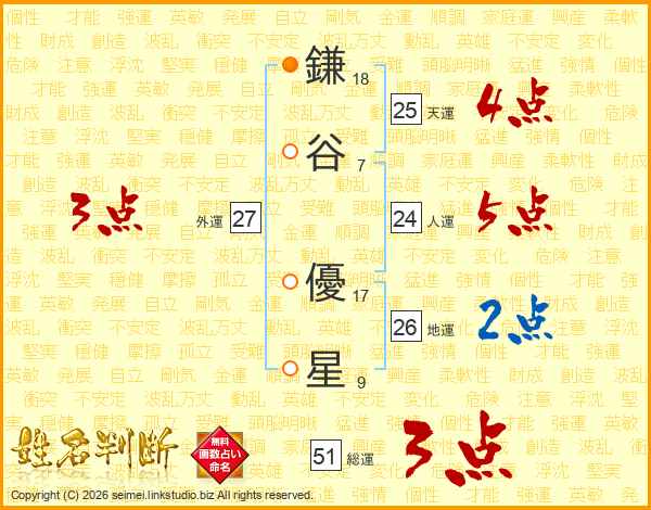 鎌谷優星さんの総運は51画の3点!