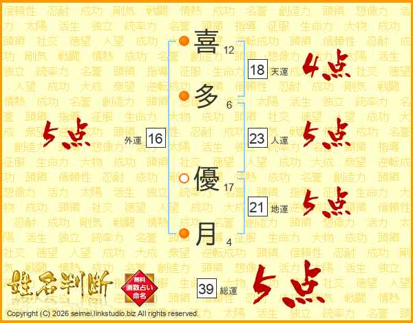 喜多優月さんの総運は39画の5点!