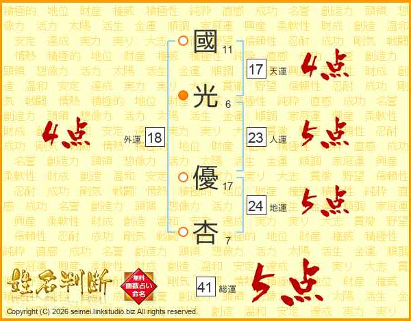國光優杏さんの人運は23画の5点!