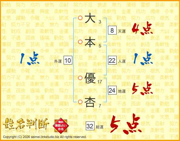 大本優杏さんの総運は32画の5点!