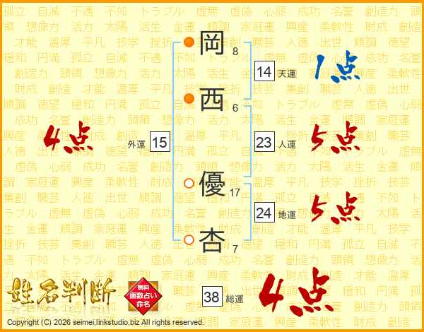 岡西優杏さんの総運は38画の4点!