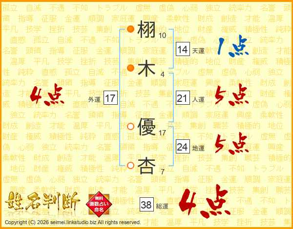 栩木優杏さんの総運は38画の4点!