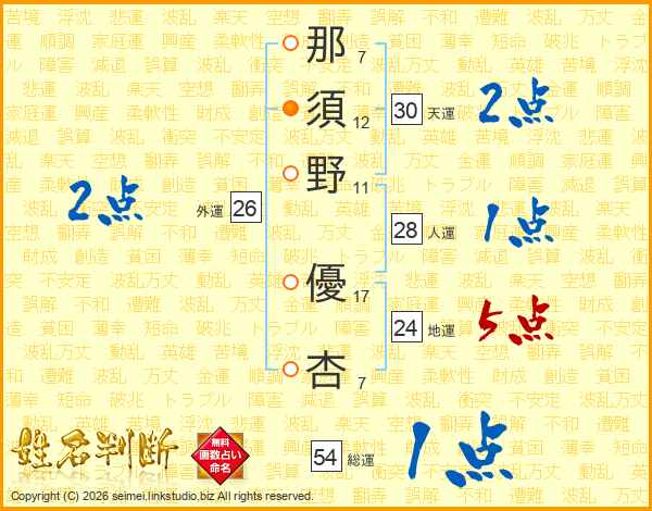 那須野優杏さんの総運は54画の1点!