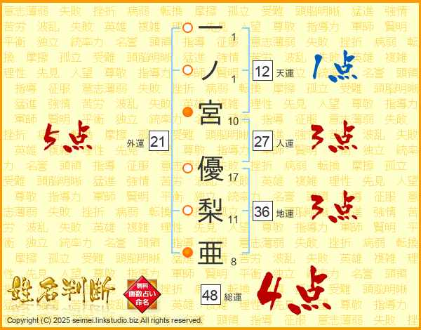 一ノ宮優梨亜さんの総運は48画の4点!